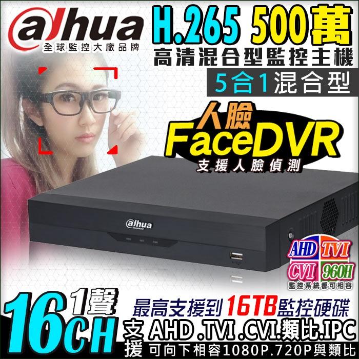 L【無名】監視器 大華 16路1聲 主機 人臉偵測 監控 500萬 AHD 1080P 手機遠端 含稅 H.265