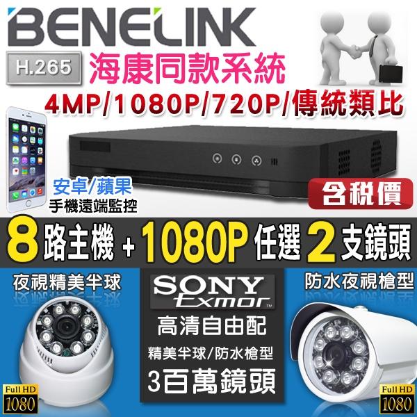 【無名】監視器 套餐 海康系統 H265 1080P 8路2支 鏡頭 防水夜視 4MP 400萬 主機