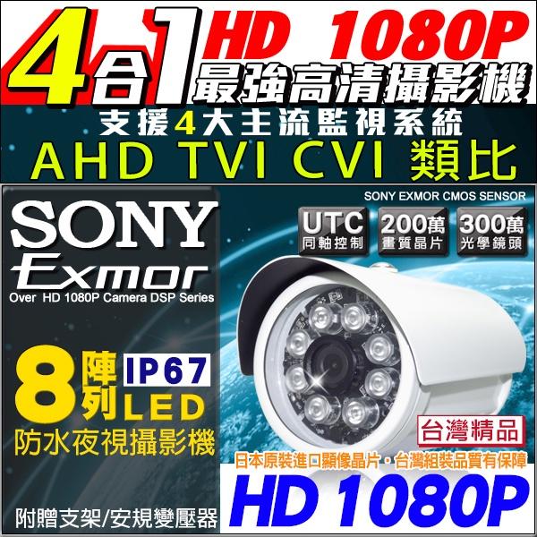 B【無名】 監視器 1080P 720P 300萬 SONY 攝影機 AHD 8燈 防水槍型 紅外線 夜視 含稅