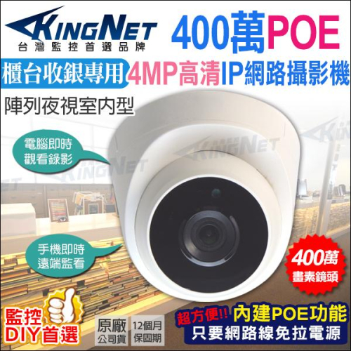 【無名】最完整多種類門禁防盜批發商 ☆ 營業時間 周一至周五 AM 09:00 ~ PM 18:00 (不含例假日) ☆ 對於商品有使用操作上問題歡迎於聊聊反應給我們,由專員替您解決 本館商品提供完善的售後服務。任何商品上的問題歡迎聊聊詢問 📣 我們擁有最完整的監控、門禁商品 📣 最強的價格優勢及最直接的技術支援 📣 本賣場提供郵寄或宅配方式,也可以貨到付款ㄡ! ------------------------------------------------------------------------------------------------------ 加購區 超多優惠 省很大!!! 變壓器 / 線材 / 傳輸器 / HD高清 等多樣商品 https://shopee.tw/kingnet88?shopCollection=17325211#product_list 加購區 TF卡 16GB / 32GB / 64G/ 128G https://shopee.tw/i.30102222.1652088390-i.30102222.1652088390 監控硬碟:1TB / 2TB / 3TB / 4TB https://shopee.tw/i.30102222.440445302-i.30102222.440445302 ------------------------------------------------------------------------------------------------------ 服務再加碼:提供線上技術專員支援,迅速解決操作問題 保固時間:主機保固一年(非人為因素),配件、變壓器、耗材等保固七天。 IP實拍畫質 https://youtu.be/3pIy98KHwr8 ■ 櫃檯收銀專用攝影機 IPCAM ■ HD 1080P 3陣列紅外線燈 ■ 內建POE功能支援網路線供電 ■ 三種錄影方式方便儲存影像 ■ 贈安規認證DVE變壓器 4路主機 / 8路主機 / 16路主機 /室內攝影機 / 監視器鏡頭 / 門禁對講機 / 防水盒