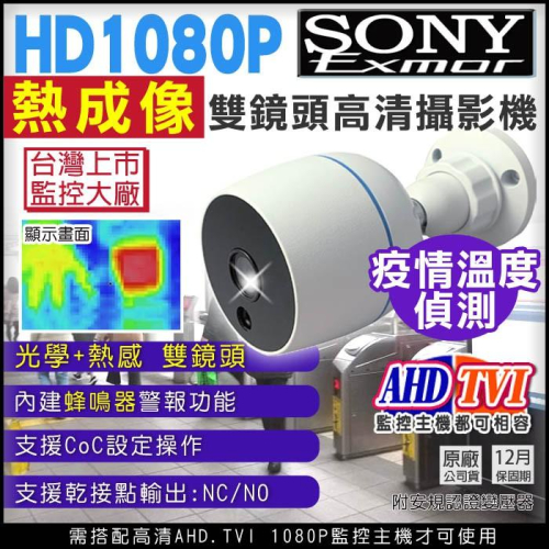 【無名】防水槍型 熱感應 熱成像 AHD TVI SONY晶片 1080P 乾接點 NO NC 溫度偵測