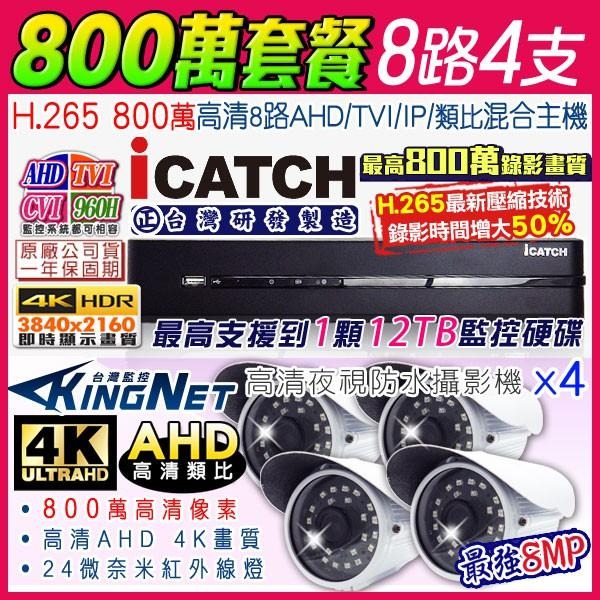 M【無名】監視器可取 icatch H.265 8路 800萬 4K DVR監控主機+ AHD 8MP 紅外線防水攝影機