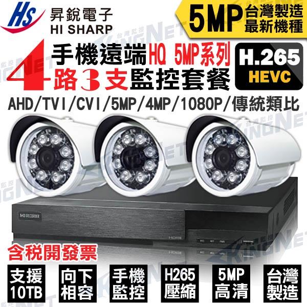 O【無名】監視器 套餐 昇銳 H265 4路3支 500萬 監控主機 1080P 手機遠端 紅外線 4311