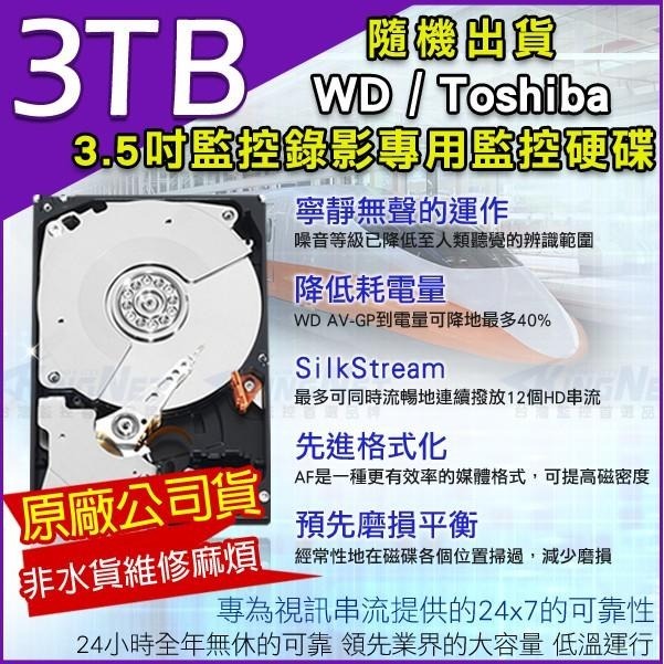 Z【無名】加購 WD Toshiba 紫標 監視器硬碟 監控專用 3T 3TB 3.5吋 SATA NVR DVR