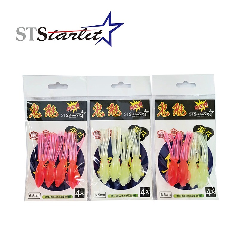 STARLIT #星光 #鬼魅烏賊 #4入裝 #6.5cm #假餌 #夜光 #附夜光棒