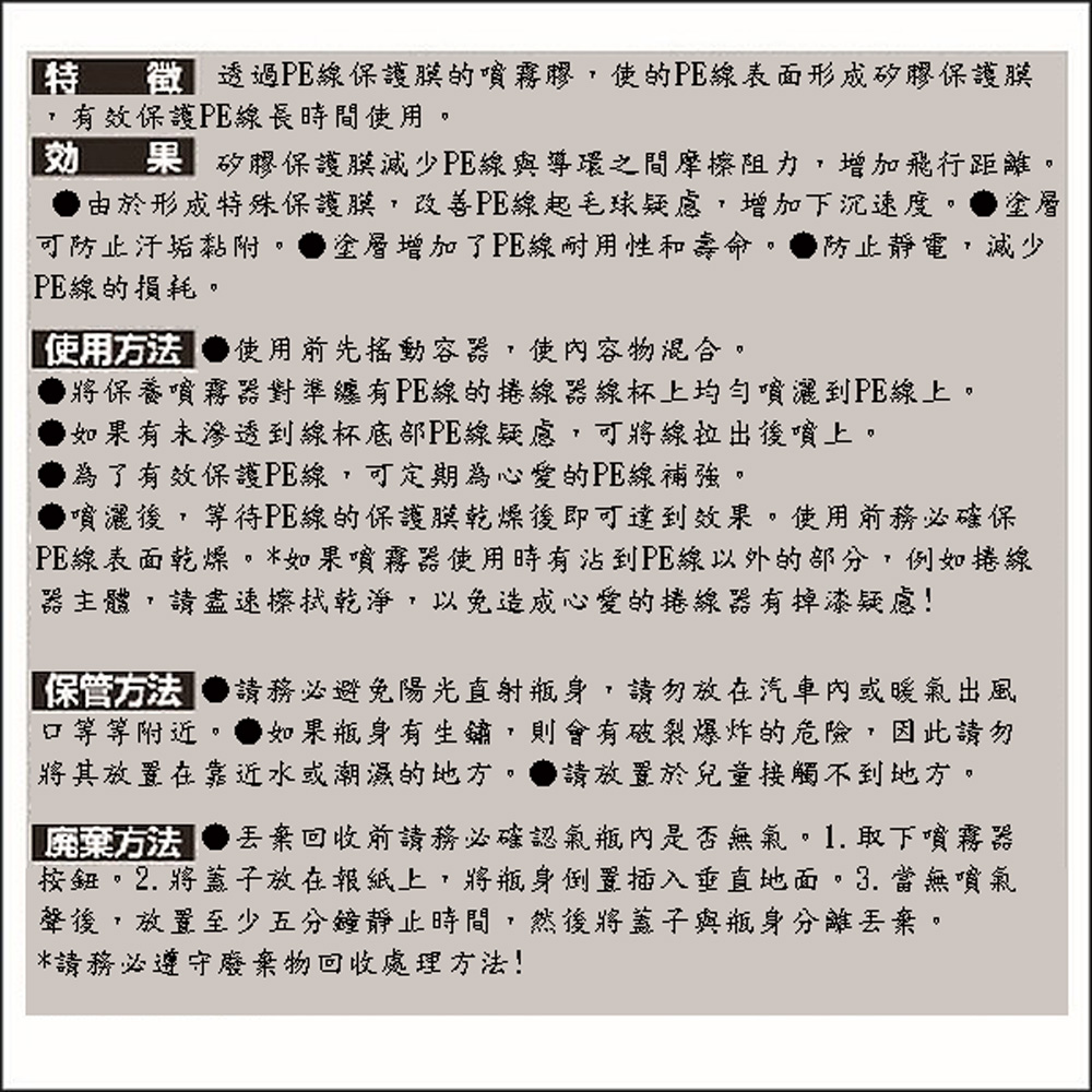 SLASH PE Coat Spray 釣線保養噴劑 PE線保養油