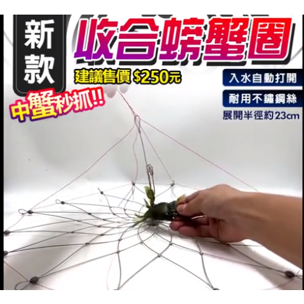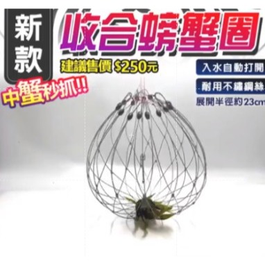 豐收FS 螃蟹網籠 收合螃蟹圈 螃蟹神器 不鏽鋼材 展開直徑50公分 釣魚配件 螃蟹圈