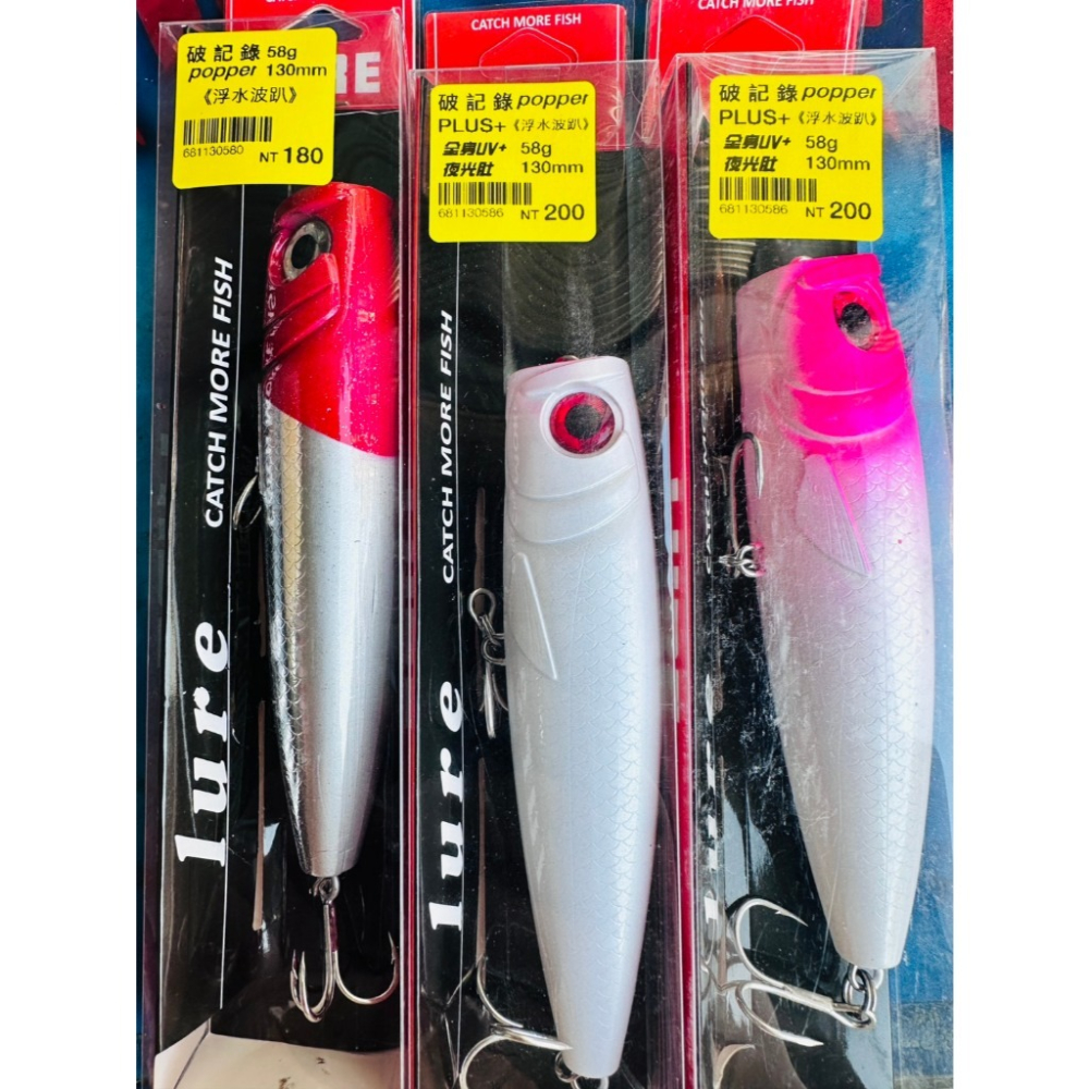 破紀錄 波趴 Popper 破紀錄 浮水波趴 130mm 58g 竹梭 飛扁 路亞 岸拋路亞