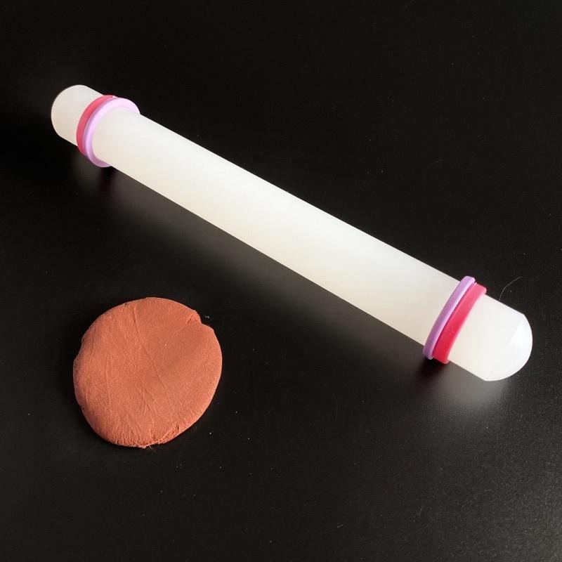 塑膠實心黏土擀平棒,左右兩邊的粉紫色圈圈是厚度控制用,可控制在2mm/4mm厚度