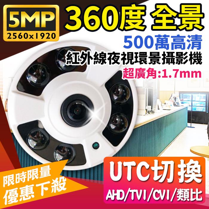 【紅海】360度 500萬 全景攝影機 1.7㎜ 超廣角 紅外線魚眼鏡頭 遠端監控 5MP 4合1 AHD 監視器