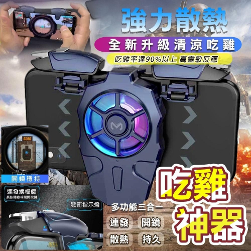 *左鍵連發(需充電 有燈號)/右鍵開瞄準(不需充電 沒燈號)* 請將手機殼卸除在使用,如遇手機本身較厚時,卡住就後不用上固定鎖! **建議將手機殼卸除在使用** 若使用上有問題請聯絡我們的雞大師0935574938 **急速散熱,可開啟連點模式 頻率達30次/秒** ◆連點模式精準射擊 ◆三段風力調節 拒絕手機發燙 ◆拉伸67-85mm 手把最大支持厚度11mm ◆可分體使用,一機兩用 ◆節電設計,長效續航 *左鍵連發(需充電 有燈號)/右鍵開瞄準(不需充電 沒燈號)* 請將手機殼卸除在使用,如遇手機本身較厚時,卡住就後不用上固定鎖! 【商品特色】 1.三段風力自由切換 熱風不吹手/不擋手 散熱器排出的熱風不會吹到手 預留手指操控位置不影響原操作手感 2.支持絕大部分手機 散熱器可拉伸6.7~8.5公分, 手把最大支持厚度11mm 3.散熱風扇和連點器可分開單獨使用~ 帶獨立電池 隨意搭配 4.兩段式操作,一段無連點,二段點擊頻率提升到30次/秒 5.低耗電長續航 散熱風扇:充電1.5H,續航3~5h 連點手把:充電5分鐘,再戰12h 6.可邊充手機邊玩  不擋充電孔和耳機孔放心玩暢快吃雞 7.高度靈敏導電矽膠 點射掃射皆可駕馭,反應靈敏零延遲 8.機械黑軸,滑鼠手感 按壓回彈有如滑鼠般按壓的清脆聲 像極了電腦時戰操作,讓人愛不釋手 9.通用大部分手遊 打開設計面板,進入遊戲設定  操作設置-自定義佈局 商品規格 商品品牌:MEMO 商品型號:AK-03 商品名稱:吃雞神器手機散熱風扇+連點器 適用範圍:彈簧夾裝可拉伸6.7-8.5公分(通用大部分手機) 商品材質:ABS/矽膠 產品尺寸:9x7.7x2.5cm 包裝尺寸:8.8x4.3x12cm 產品毛重:約132g 供電方式:USB充電使用,蓄電持久(可邊充邊玩)