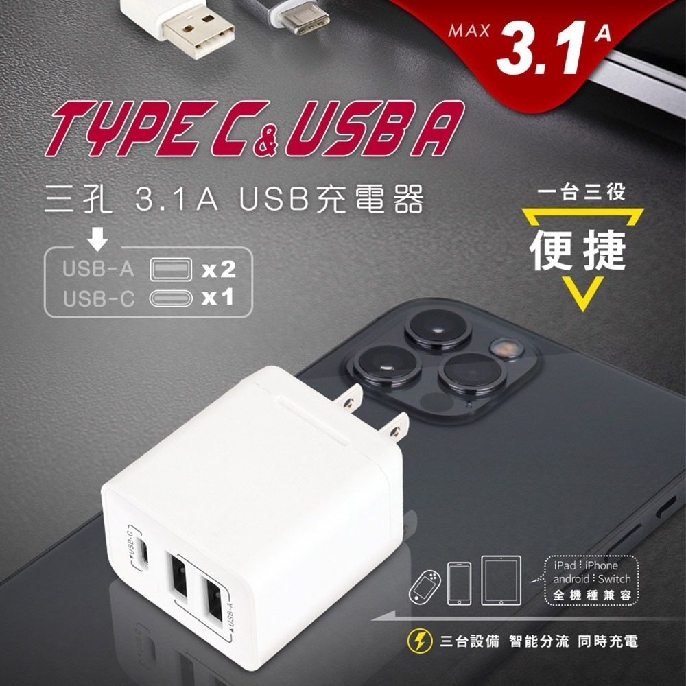 TYPE-Cx1、USBx2三孔,智能IC識別自動匹配不同設備所需的電壓及電流,同時充電