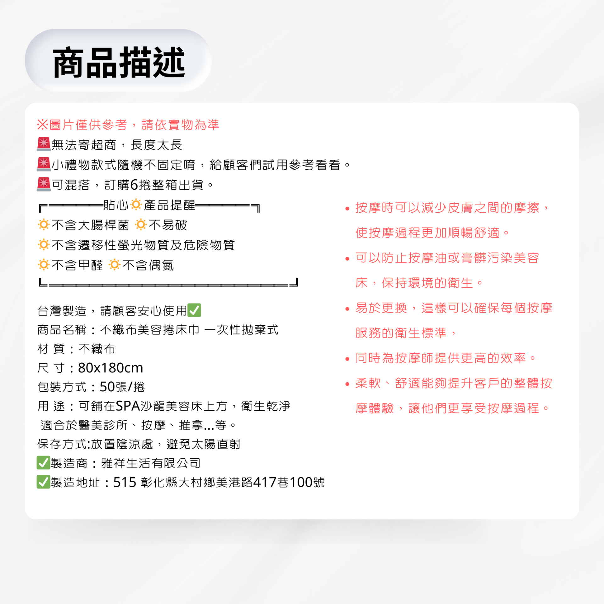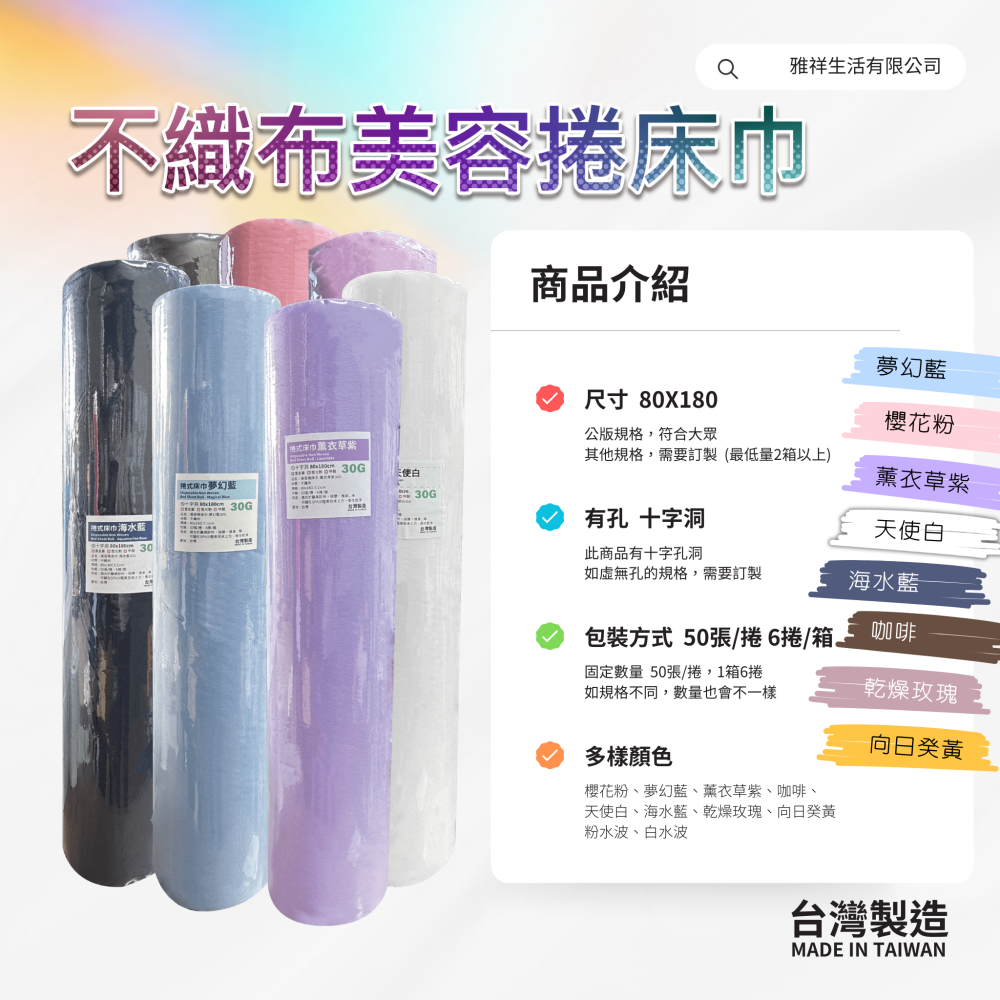 《享有免運優惠》美容床巾 ✅十字孔 ✅台灣製造 ✅美容按摩 ✅SPA 一次性拋棄式 油壓紙 床巾 捲床巾