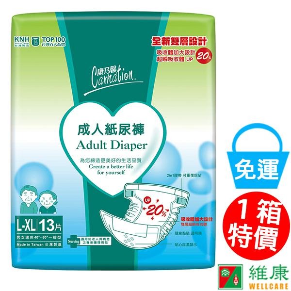商品介紹:康乃馨成人紙尿褲一般型L-XL 13片/6包/箱