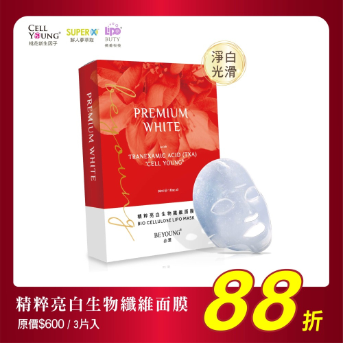 品名:BEYOUNG 必漾-精粹亮白生物纖維面膜 (3片)/盒