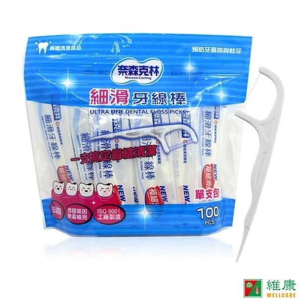 奈森克林 細滑牙線棒單支 100支/袋 維康