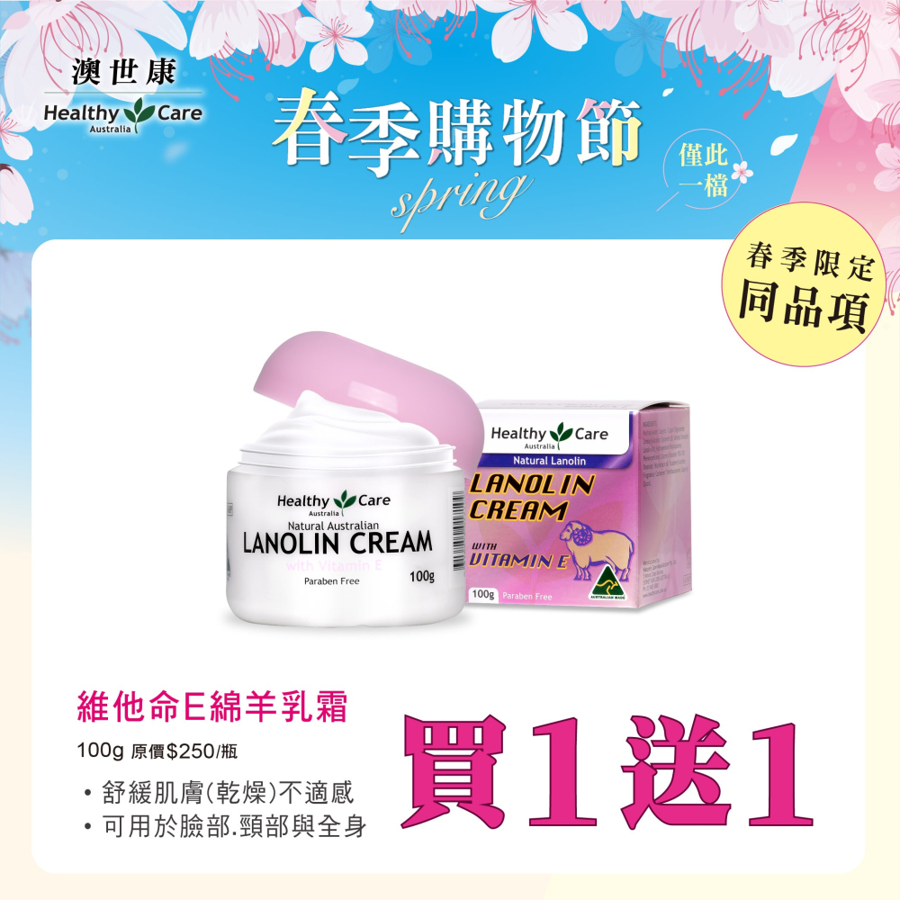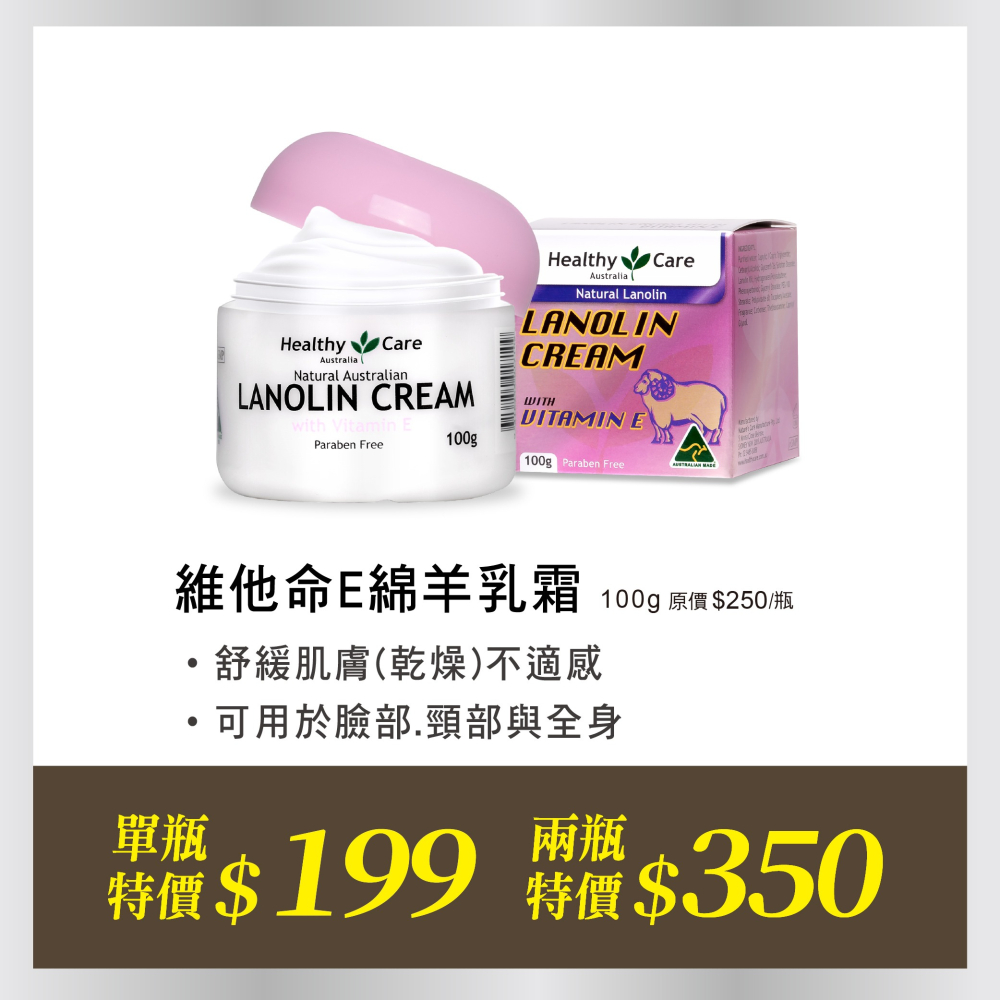 產品說明: Healthy Care澳世康 維他命E綿羊乳霜 100g/罐 維康 澳洲生產進口