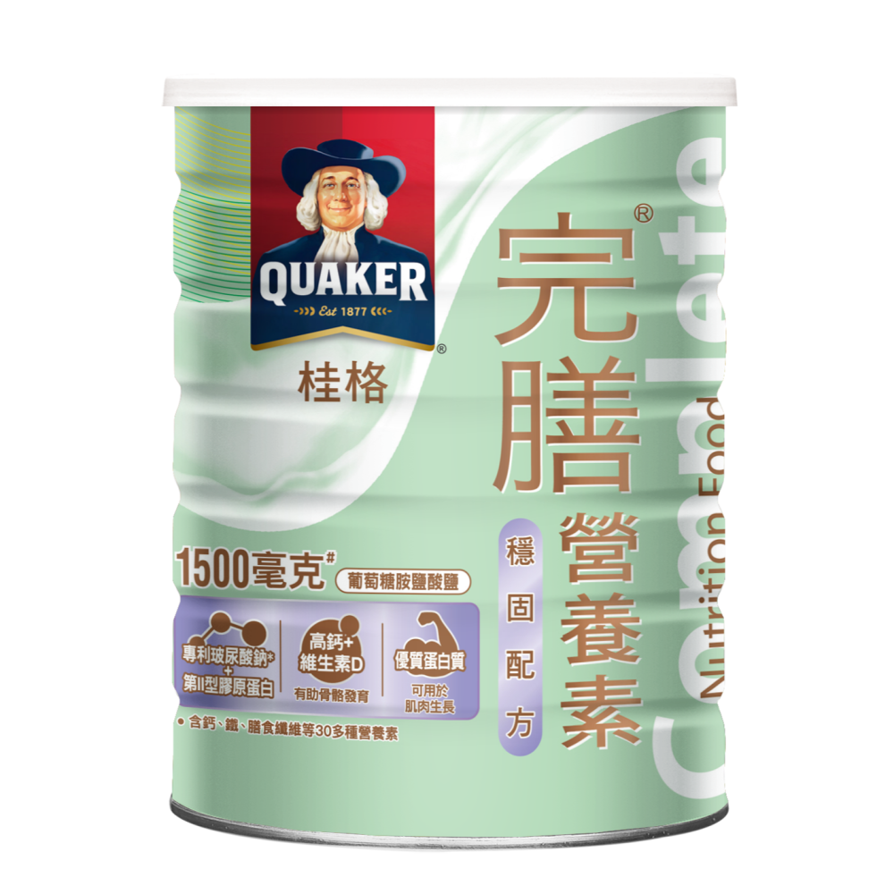 本產品根據衛福部公布之國人膳食營養素參考攝取量 (DRIs) 所設計,除了優質蛋白質、高鈣、膳食纖維等一日所需的多元營養素之外,更添加足量葡萄糖胺鹽酸鹽#、第二型膠原蛋白、專利玻尿酸鈉* 等關鍵成分保養,幫助關鍵活力穩固、靈活好體力!