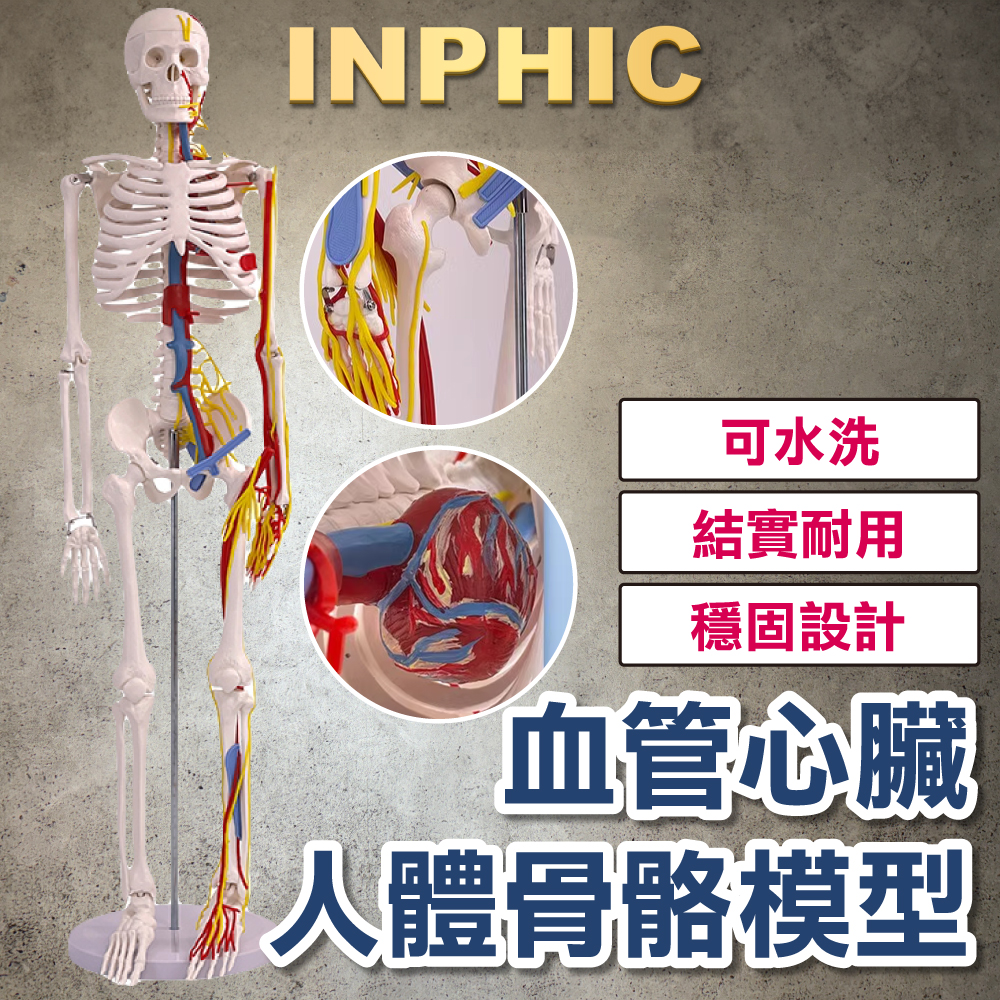 INPHIC-85CM 人體骨骼 帶心臟與血管骨架 醫學教具模型 成人全身骨架 肌肉韌帶脊椎可彎曲-INFH103104A
