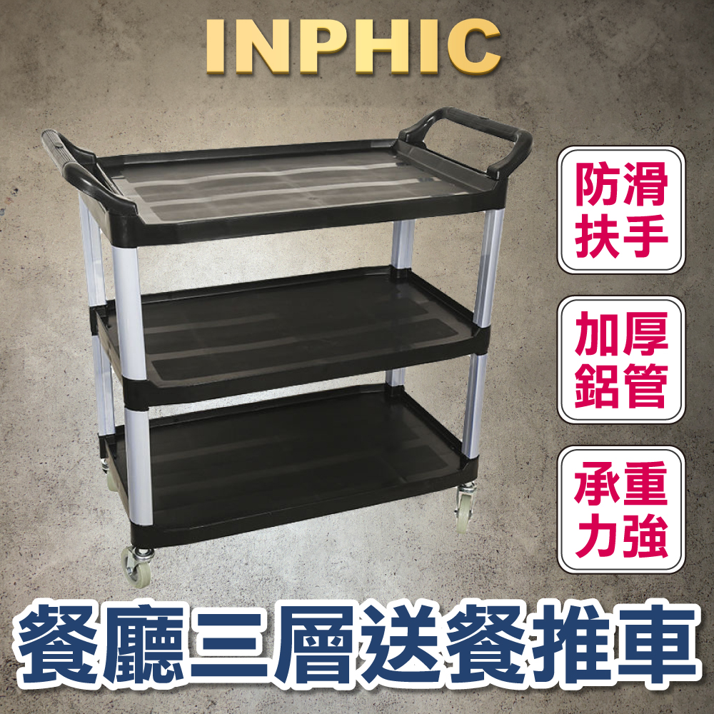 INPHIC-收碗車 收餐車 三層塑膠靜音輪 手推車 餐廳飯店火鍋店 上菜餐車 送餐車 超厚款黑色-IMXD022204A