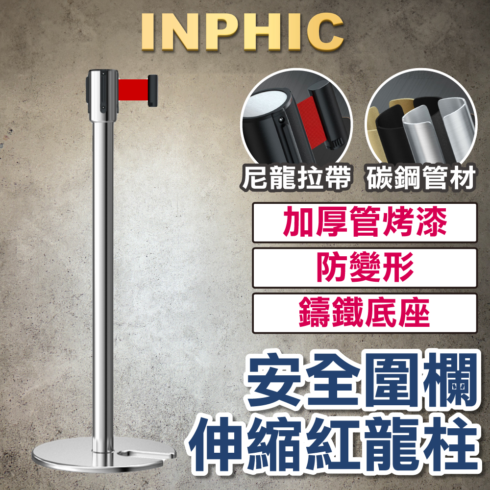 INPHIC-U型銀不鏽鋼紅龍柱 掛繩飯店 長1M 圍欄迎賓柱 排隊分隔動線 萬向伸縮帶欄柱-IMWB007304A