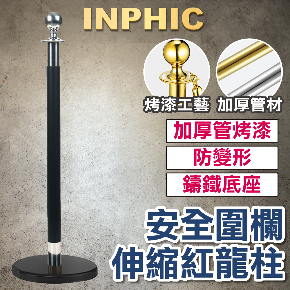 INPHIC-黑銀紅龍柱 告示牌 伸縮帶長1M 迎賓柱 排隊分隔動線 不鏽鋼圍欄紅絨柱-IMWB010504A