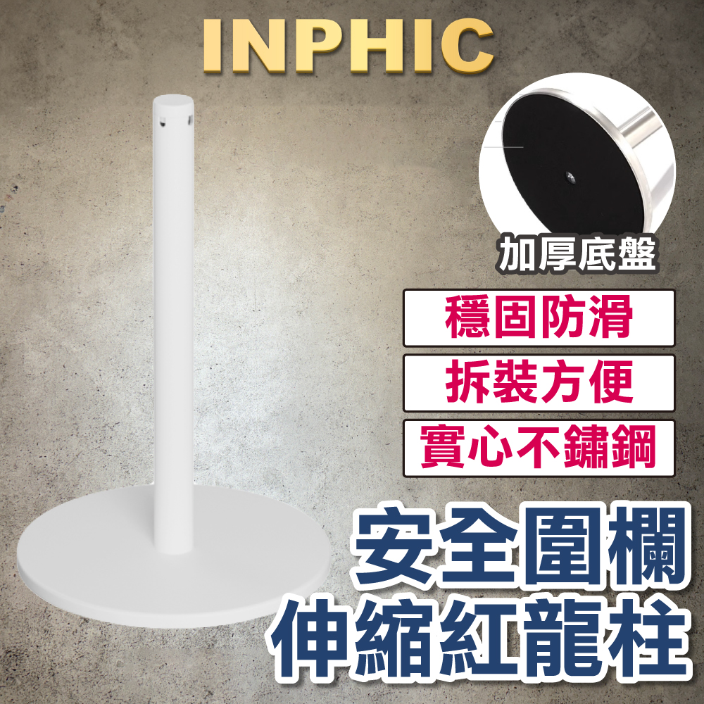 INPHIC-台灣廠商 矮圍欄穿繩立柱 繩龍柱 萬向伸縮帶長1M 排隊分隔動線 不鏽鋼白圍欄柱-IPBI005404A