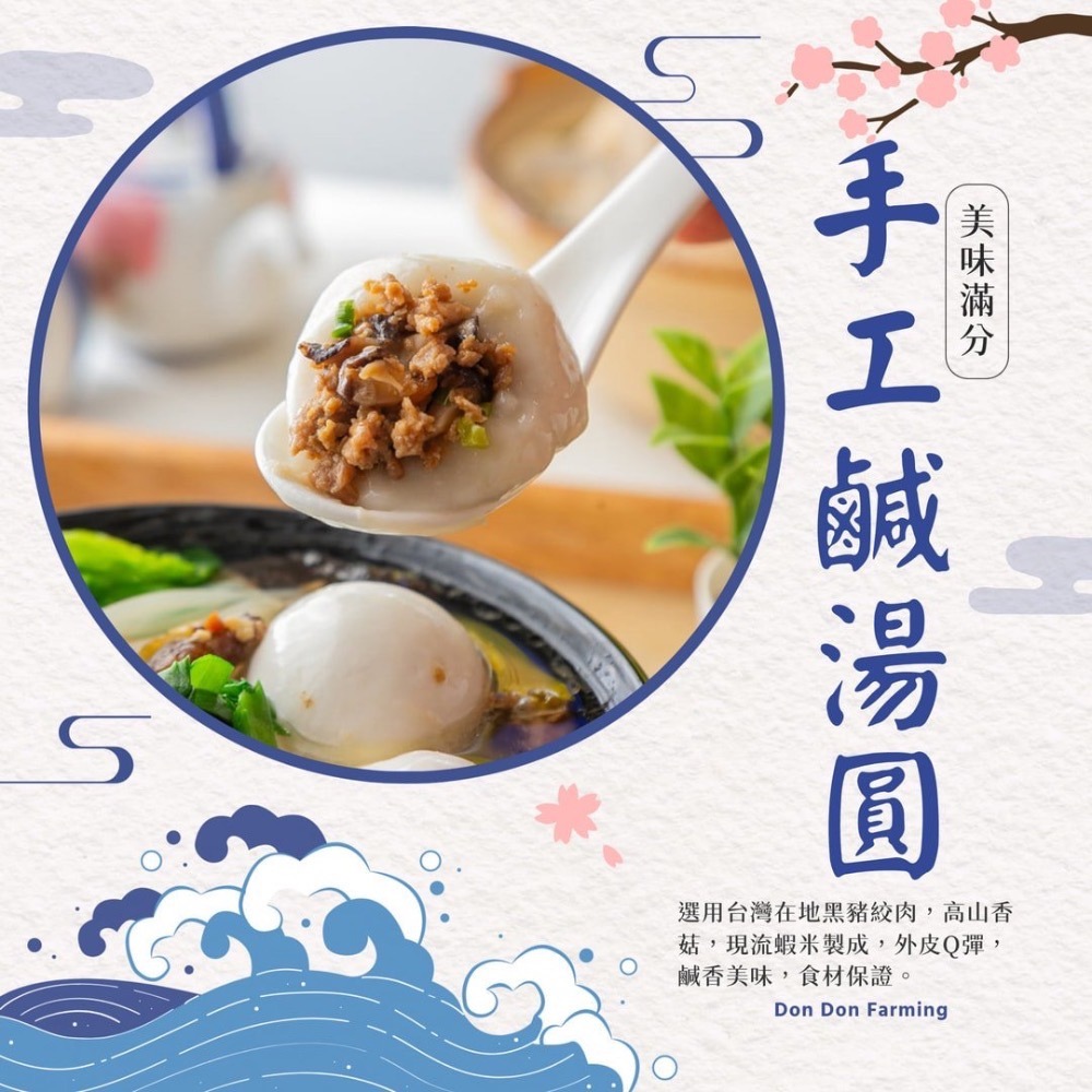 🔺食用方法:無須解凍,水滾後放入湯圓,點水兩次,煮10~12分鐘,待湯圓浮起後放入油蔥酥、茼蒿、芹菜,加少許鹽調味,就是一碗團圓幸福的鹹湯圓唷!