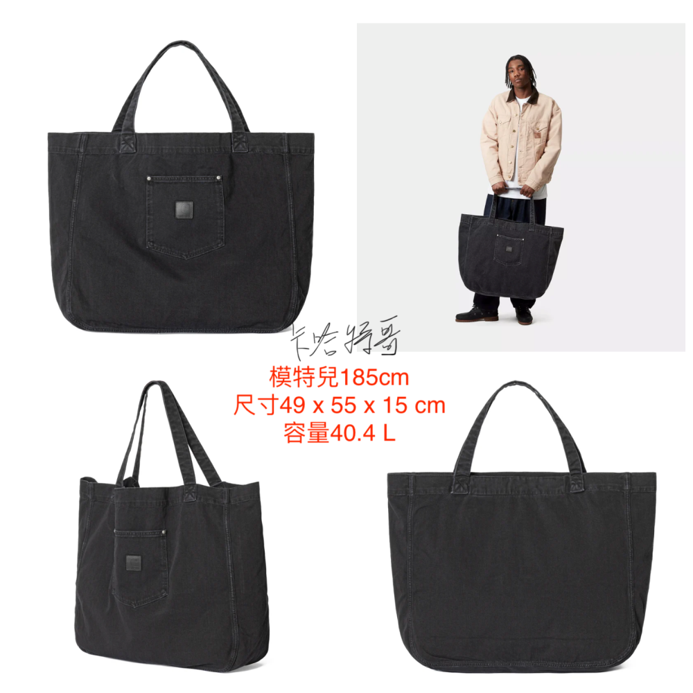 The Rivet Tote Bag is made from heavyweight cotton denim and is unlined. The item has an inner zipped pocket and an outer pocket detailed with metal rivets. An artificial leather Square Label completes the design.