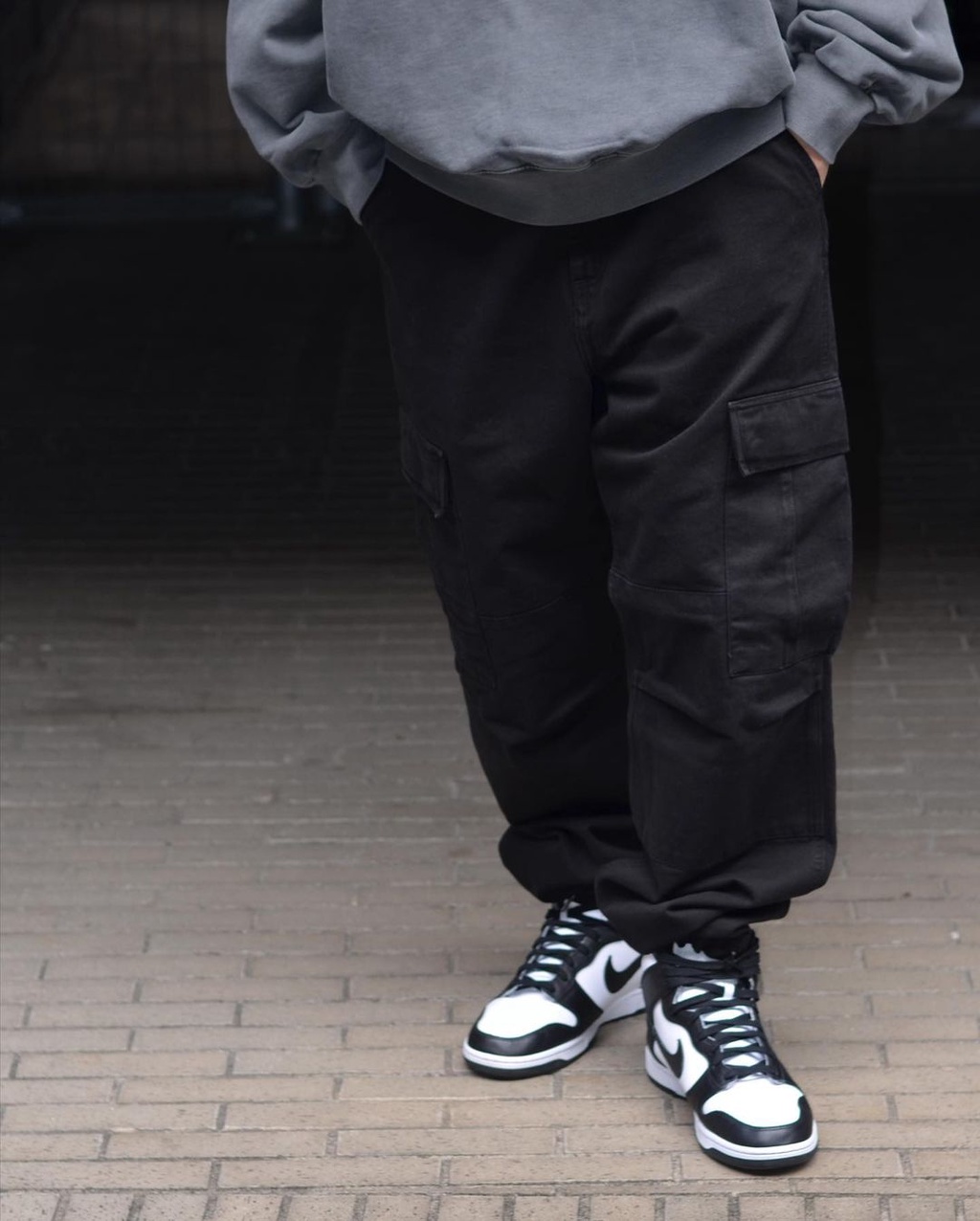 寬鬆的 balloon fit 剪裁 (類似氣球的形狀),袖口與腰部的寬鬆設計,透過工裝細節來營造更舒適的休閒風格