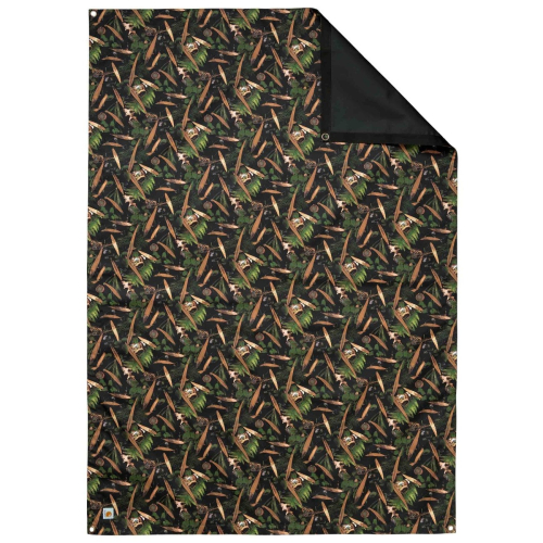 The Picnic Blanket is constructed from a water repellent and durable polyester canvas that bears a seasonal camouflage print. The item features brass eyelets, a polyester woven carry strap with velcro closure, and a woven Square Label. Please see details for measurements.