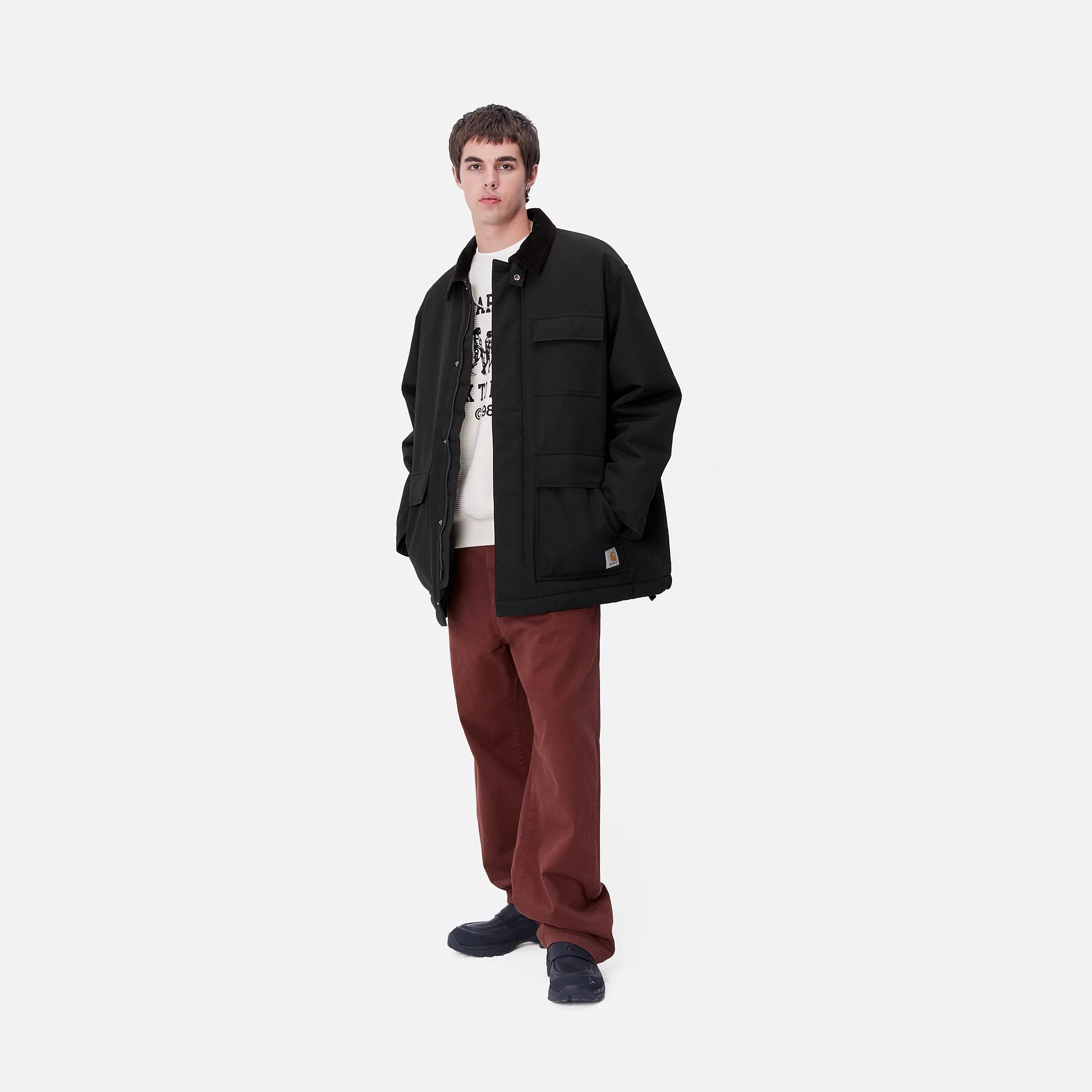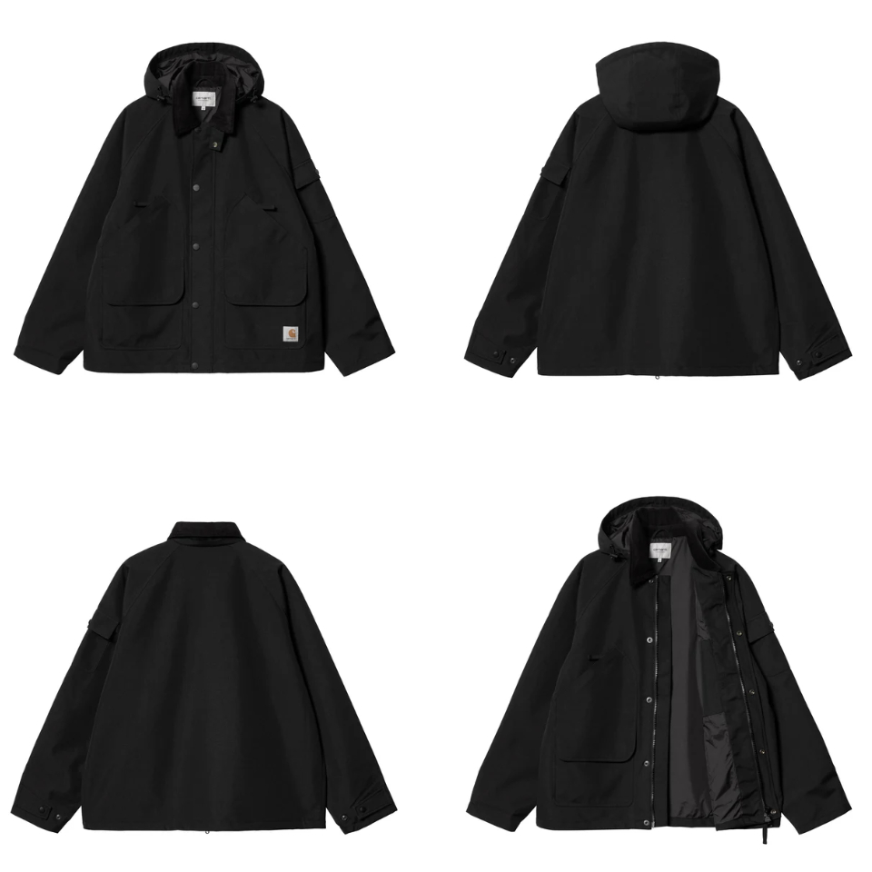 The Clarton Jacket is made from midweight nylon canvas and lined with nylon taffeta. Inside, the item has a chest pocket. On the outside is a hood and corduroy collar, detailed with a strap and snap-button closure. Additionally, the jacket has a sleeve pocket, as well as two gusseted front flap pockets, both of which can be accessed from the sides. A woven Square Label completes the design.