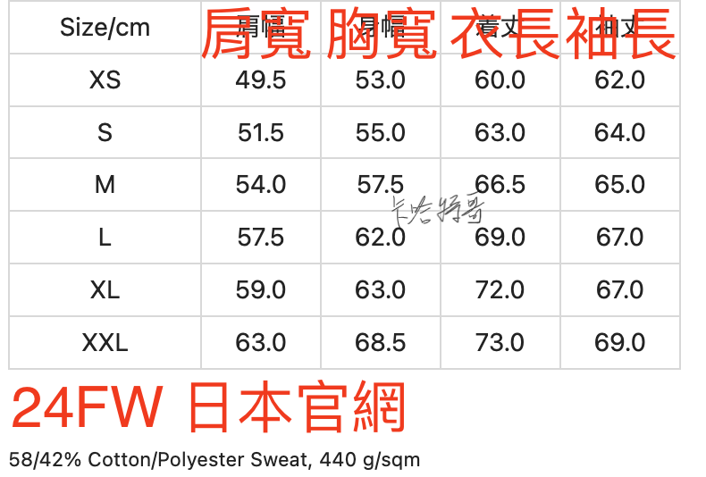 材質 : 58/42% Cotton/Polyester Sweat, 440 g/sqm 厚磅