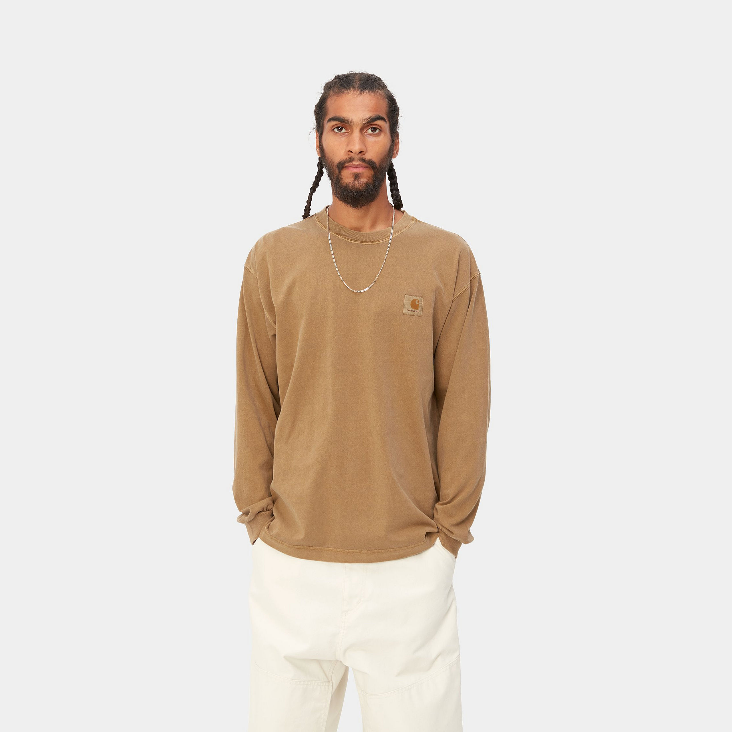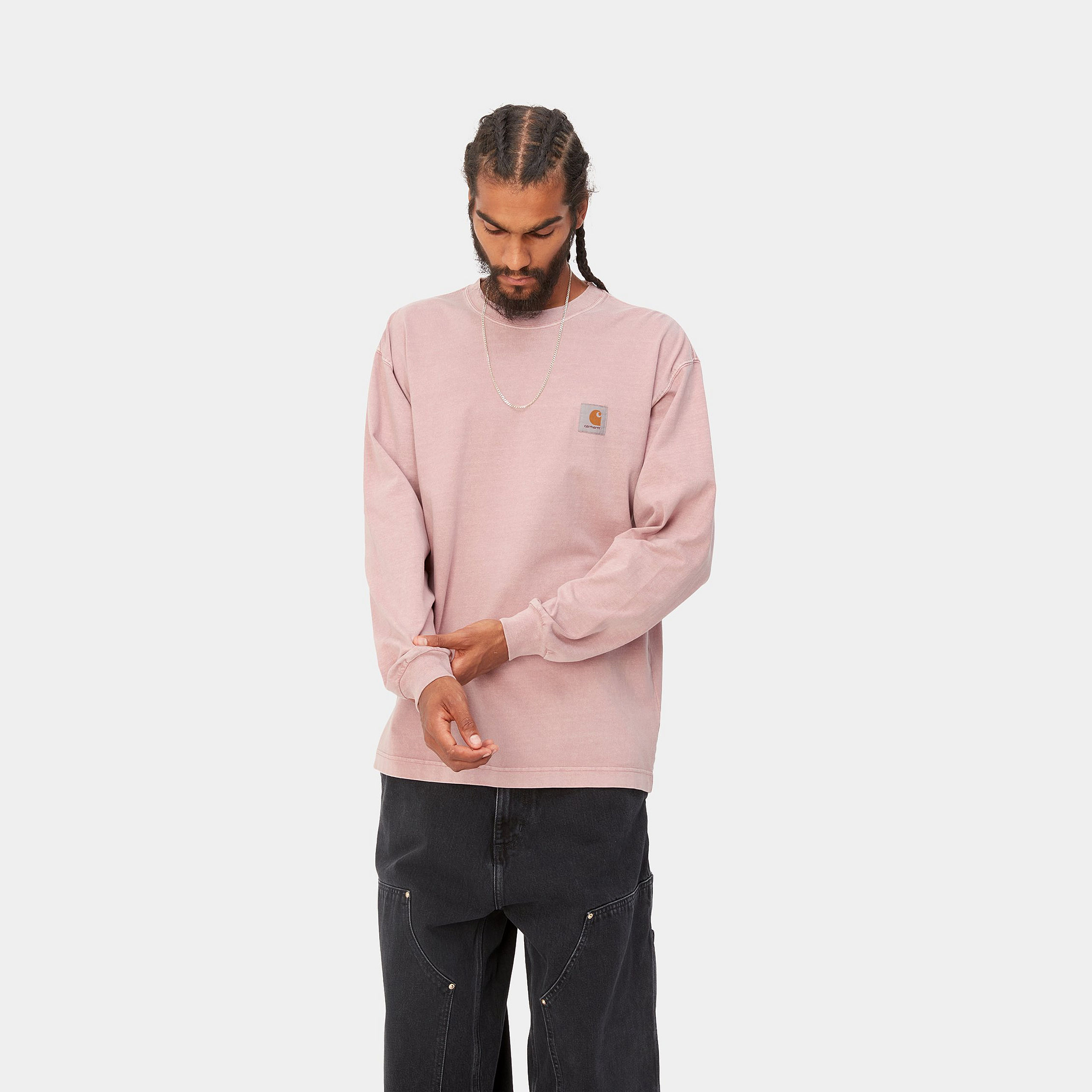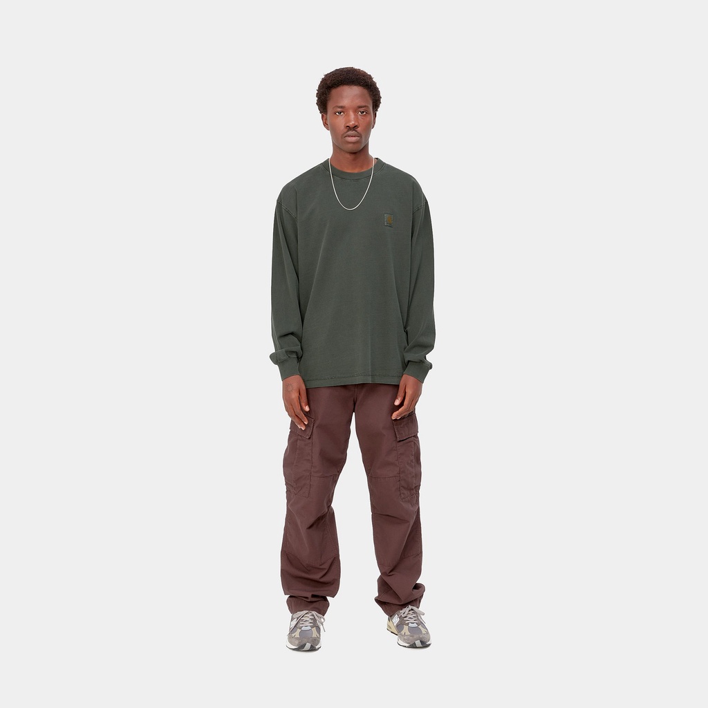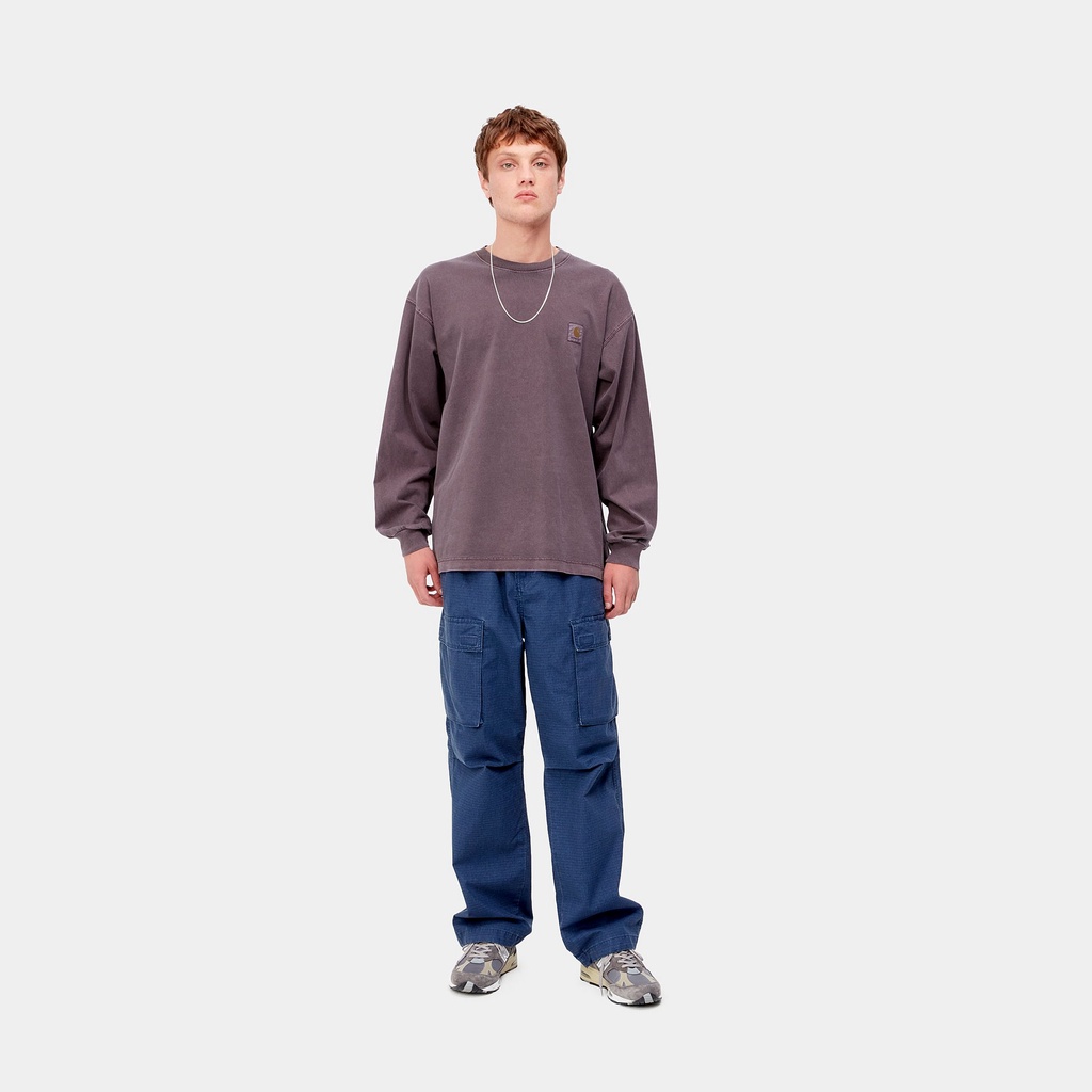 The L/S Vista T-Shirt is cut from midweight cotton jersey in a loose fit, with relaxed shoulders and sleeves that cinch at the cuffs. Additionally, the style has been garment-dyed giving it a washed yet saturated hue. A woven Square Label, rendered murky by the garment-dyeing process, appears on the left chest.