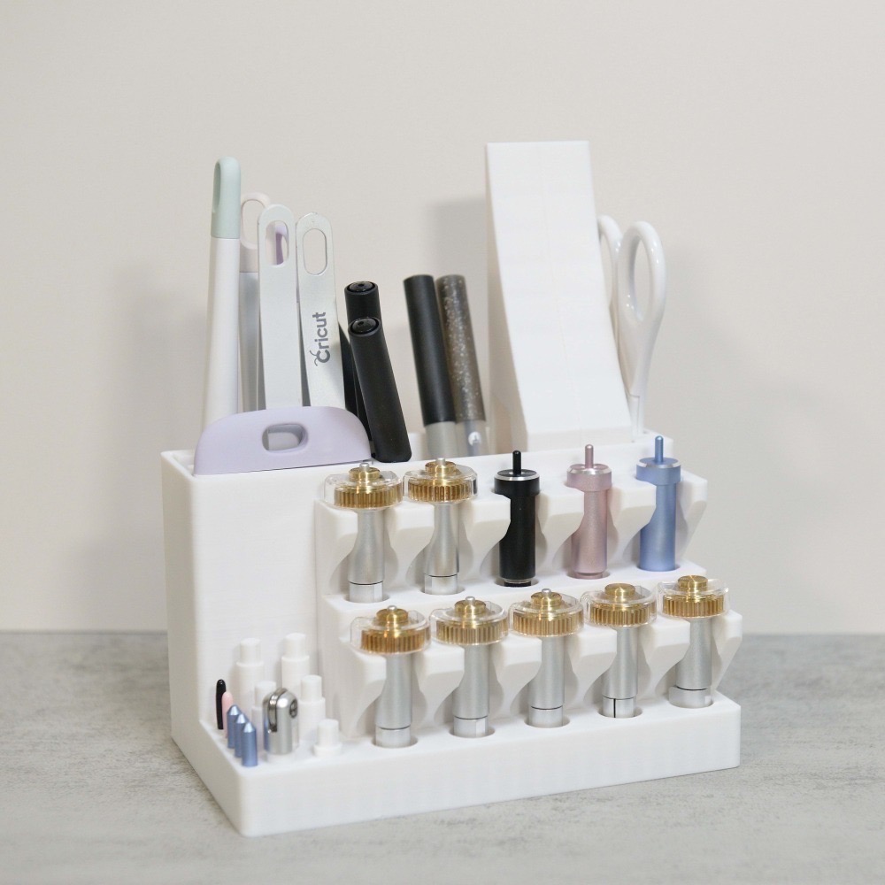 這款專為 Cricut 使用者打造的刀具與工具架,是優化創意工作室的理想選擇。這是一個精心規劃的套件,可以放置包括集資的 Cricut Maker3 配件大禮包、大全套刀具以及鋁箔轉印工具套件,確保您擁有一個完整且多功能的工作區域。