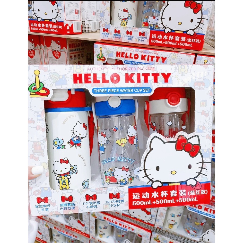 【超值三件組】Hello Kitty水杯套裝|山姆代購|卡通造型運動杯/學生水壺推薦/角色運動水壺/吸管杯/便攜杯/水杯