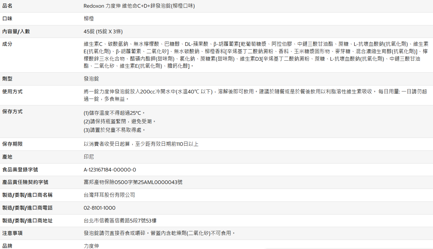 【好市多代購】Redoxon 力度伸 維他命C+D+鋅發泡錠(柳橙口味) 45錠 (15錠 X 3條)