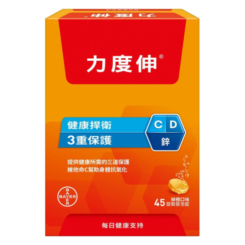 • 力度伸黃金核心三配方,一錠含有1000毫克的維他命C,添加維他命D和鋅,供給健康所需的三道保護。