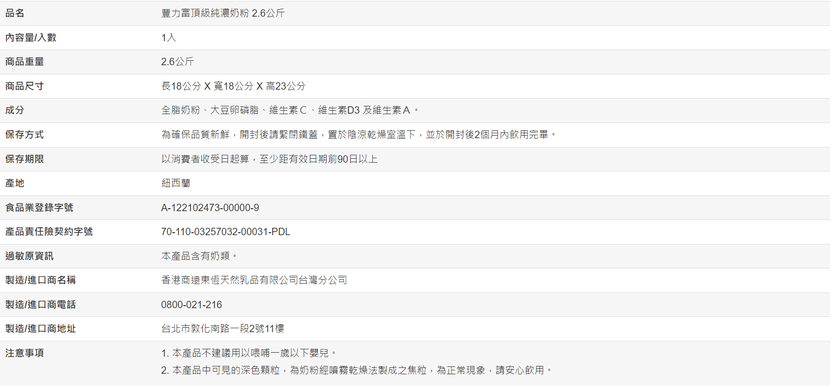 【好市多代購#限時特價】豐力富 紐西蘭頂級純濃奶粉 2.6公斤~04/12