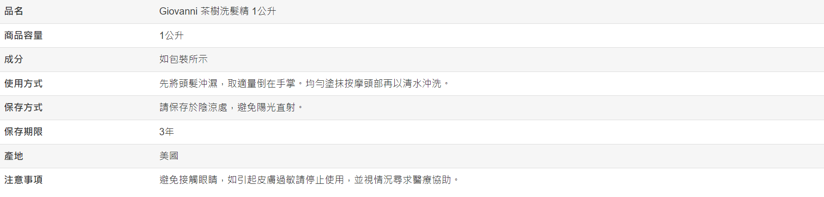 【好市多代購】Giovanni 茶樹洗髮精 1公升
