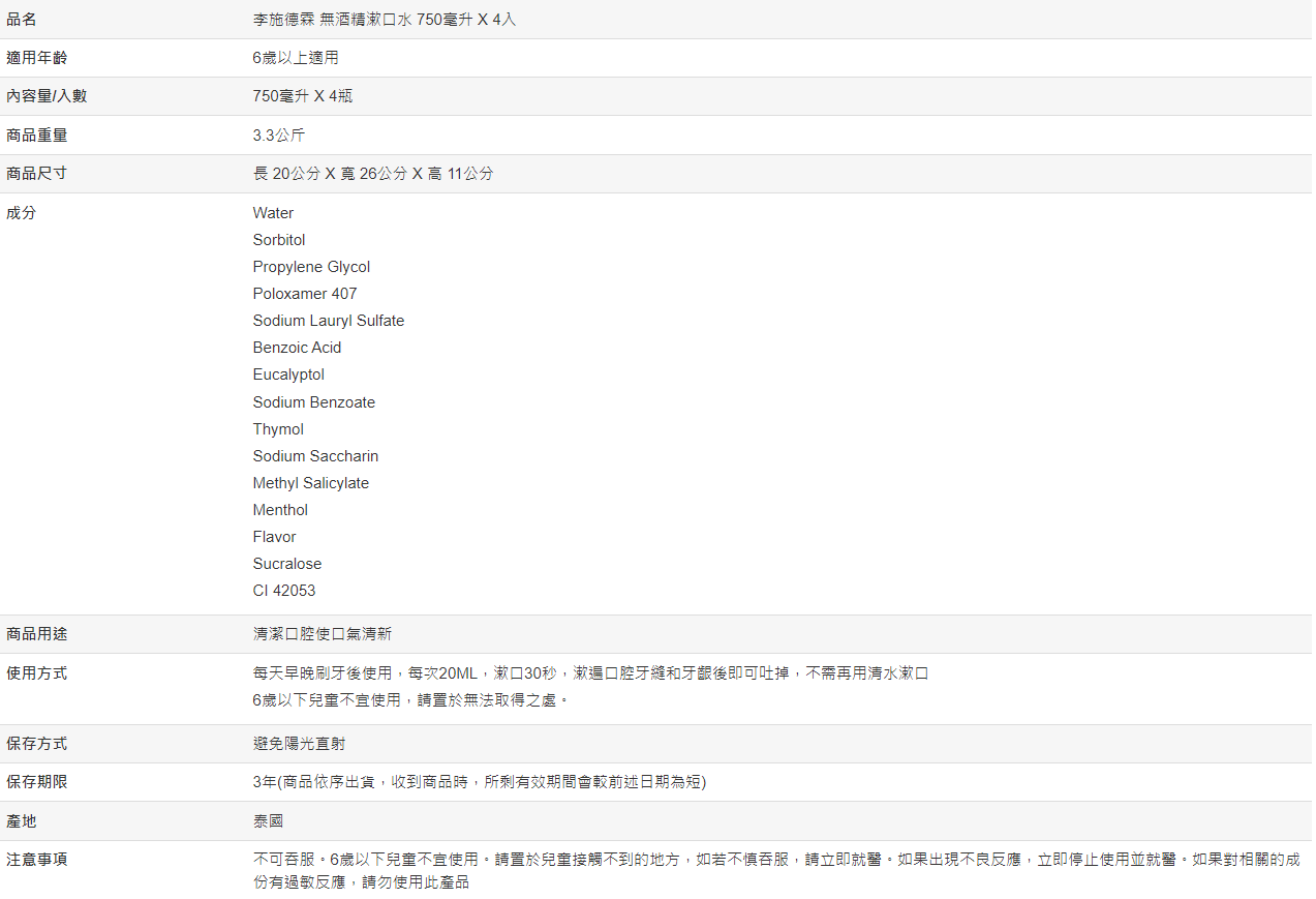 【好市多代購#限時特價】李施德霖 無酒精漱口水 750毫升 X 4入~04/12