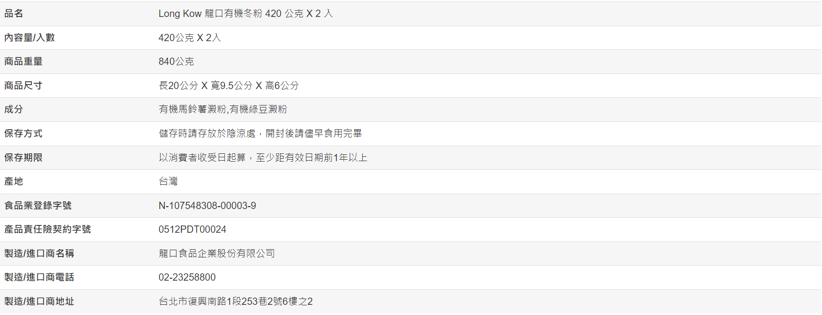 【好市多代購】Long Kow 龍口有機冬粉 420 公克 X 2 入