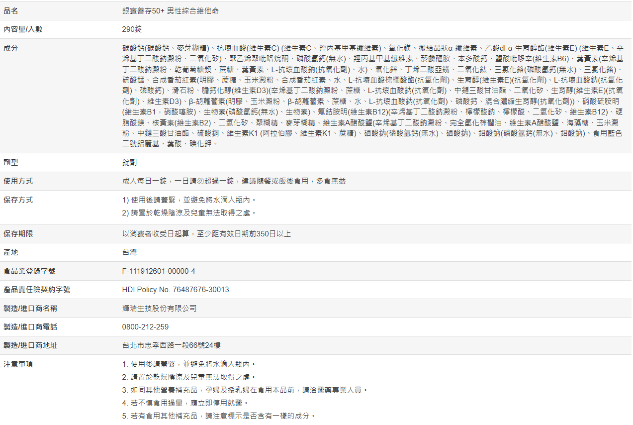 【好市多代購#限時特價】銀寶善存50+ 男性綜合維他命 290錠~05/10