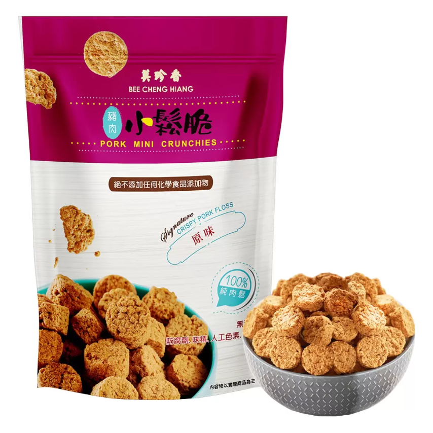• 使用上等精選豬腿肉製成,獨家首創以100%純肉鬆精製成的暢銷產品-小鬆脆,口感獨特。