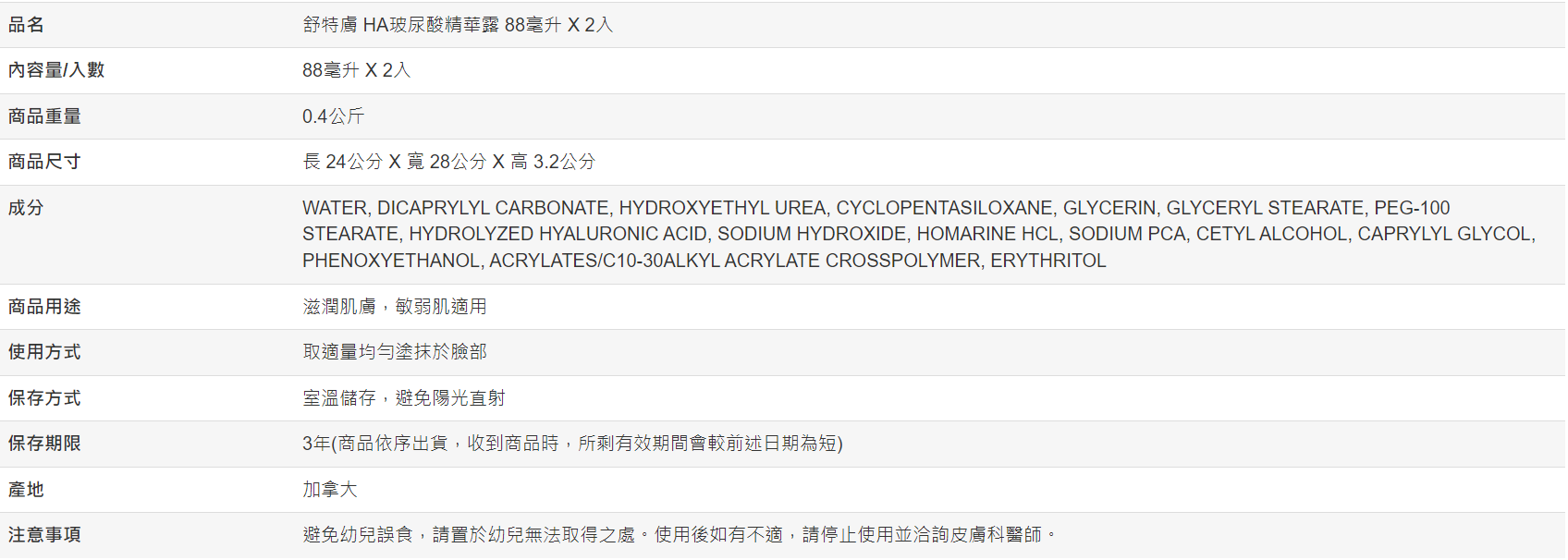 【好市多代購】舒特膚 HA玻尿酸精華露 88毫升 X 2入
