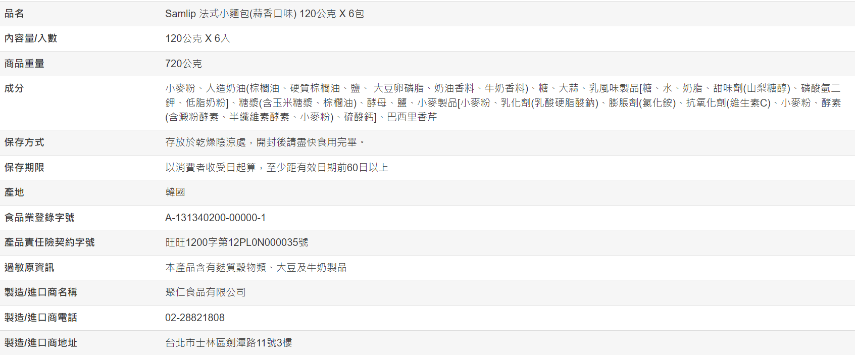 【好市多代購#限時特價】Samlip 法式小麵包蒜香口味 120公克 X 6入~12/14
