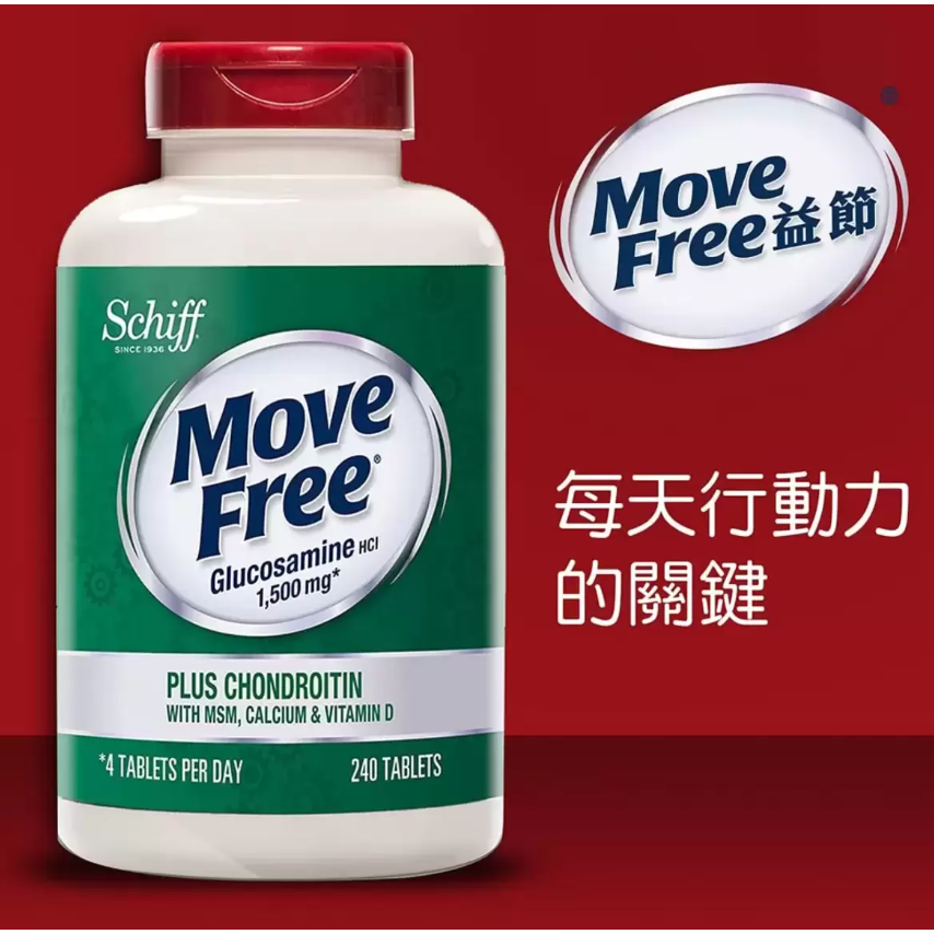 【好市多代購】Schiff 益節葡萄糖胺+軟骨素+MSM+維生素D+鈣錠(食品) 240錠 Move Free