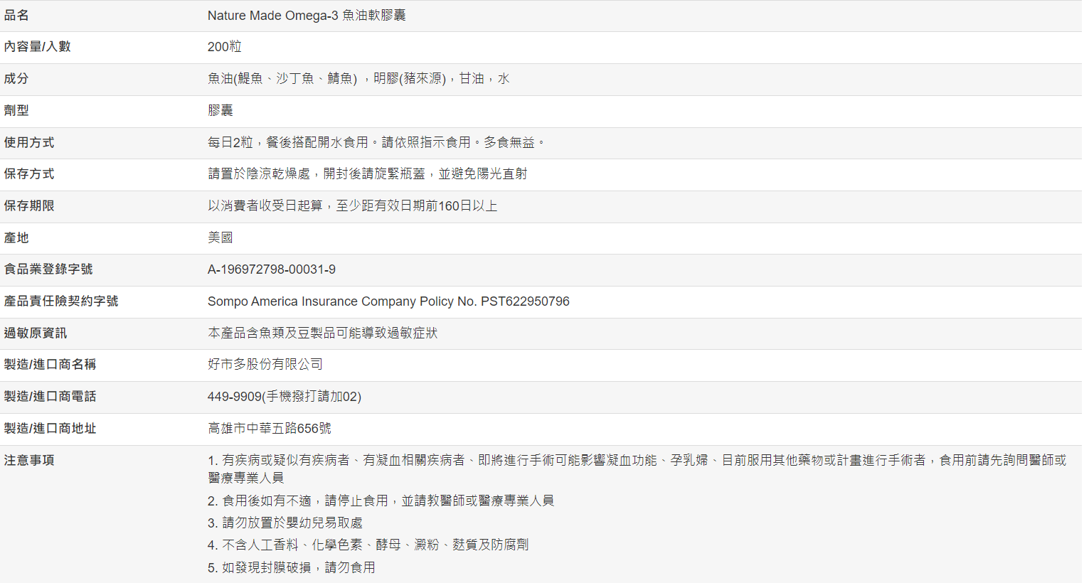 【好市多代購】Nature Made 萊萃美 Omega-3 魚油軟膠囊 200粒