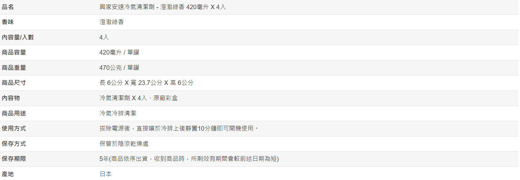 【好市多代購】興家安速 冷氣清潔劑 澄澈綠香 420毫升 X 4入