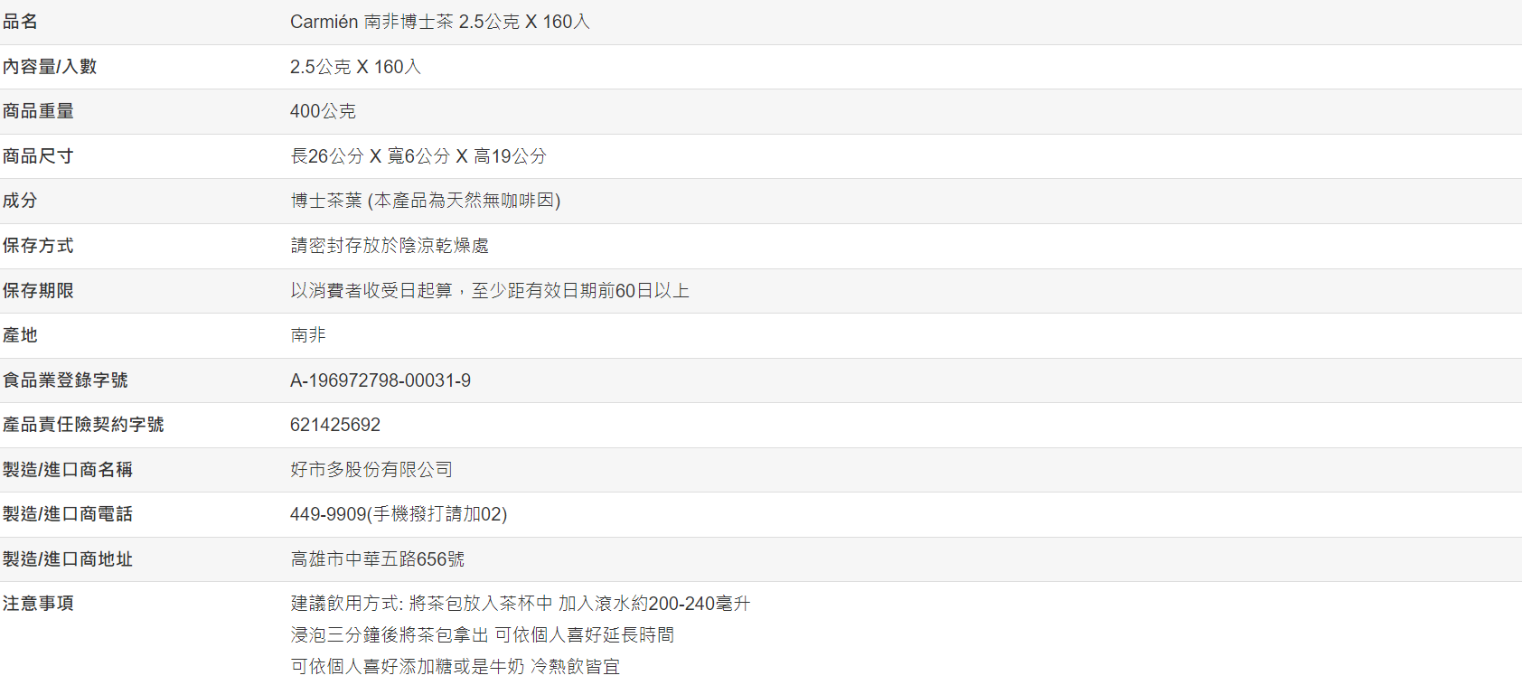 【好市多代購#限時特價】Carmien 南非博士茶 2.5公克 X 160入~08/31